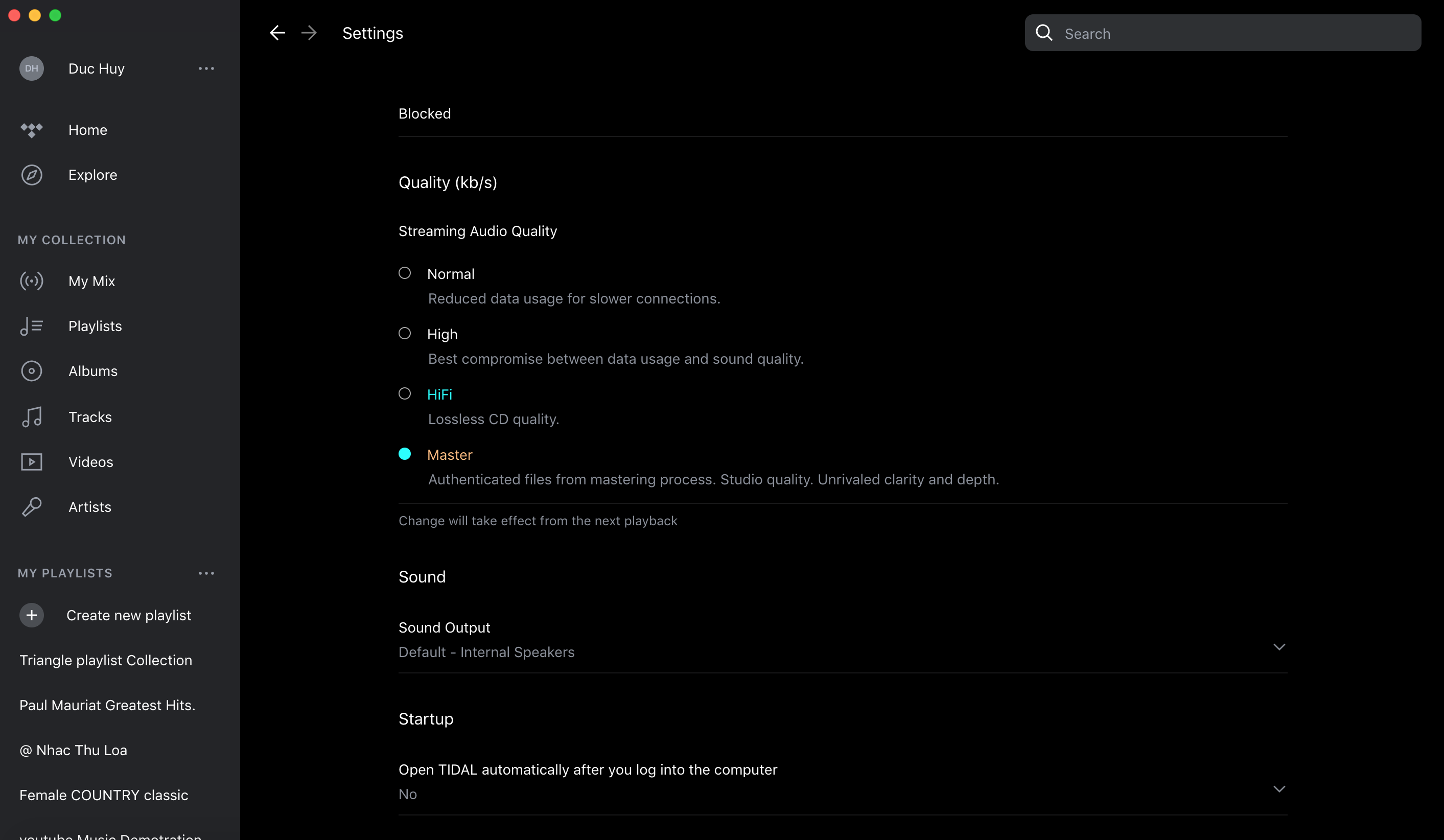 Sẽ thật thiếu sót khi bỏ qua thông tin này khi trung tuần tháng 3 năm nay 2019, một tin vui lớn cho các tín đồ yêu nhạc khi Tidal chính thức cập nhật phiên bản mới 2.7 trên nền tảng IOS và Android cho phép khách hang của mình quyền lựa chọn gói nghe nhạc Master (MQA) với độ giải cao lên đến 24bit với tần số lấy mẫu đa dạng ở 48, 96, 176 và 192kHz.(Nên nhớ chuẩn đĩa CD, file lossless ALAC hay FLAC được rip thì CD chỉ có độ phân giải 16bit và tần số lấy mẫu 44.1kHz mà thôi).